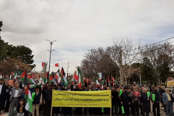 در پی تداوم جنایات رژیم کودککش اسرائیل در غزه، مردم کرمان ظهر امروز، ۱۸ اسفندماه پس از اقامه نماز جمعه در دفاع از مردم مظلوم فلسطین و اعلام انزجار از اقدامات صهیونیستها راهپیمایی کردند.