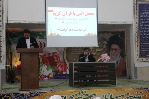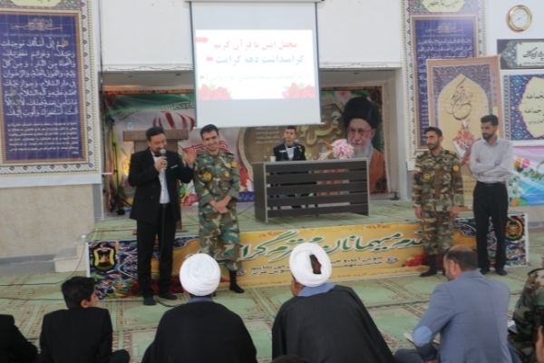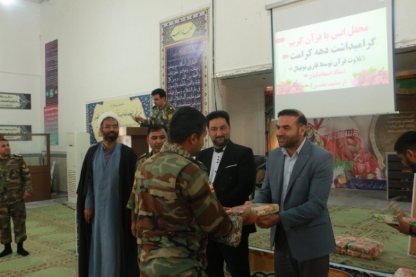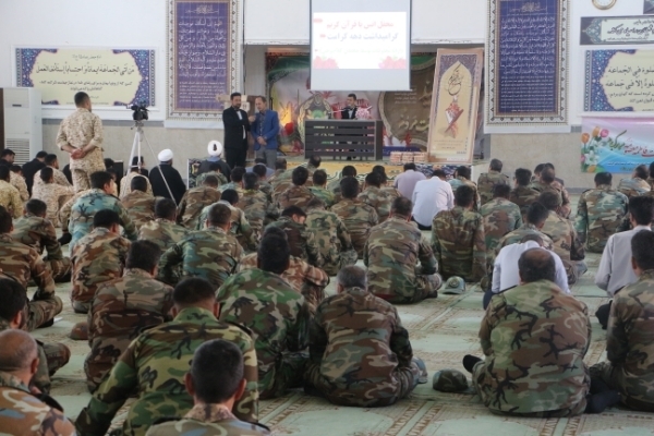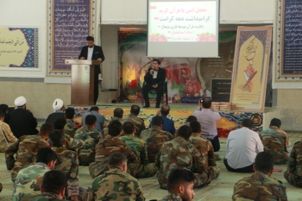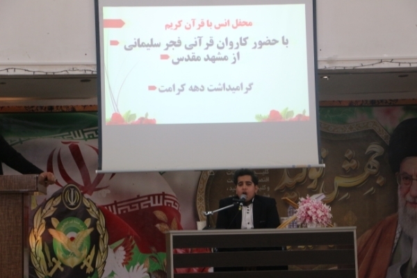 به گزارش ایکنا از کرمان، بهمناسبت دهه کرامت محفل نورانی انس با قرآن کریم صبح امروز، ۲۵ اردیبهشتماه با حضور کاروان قرآنی «فجر سلیمانی» از مشهد مقدس در حسینیه گروه ۴۵۵ مهندسی رزمی شهید رجبزاده ارتش در کرمان برگزار شد و قاریان نوجوان به تلاوت قرآن پرداختند. ارائه محفوظات از سوی نوجوان حافظ کل قرآن کریم و اجرای تواشیح توسط گروه شمسالهدی از جمله برنامههای این محفل نورانی بود.